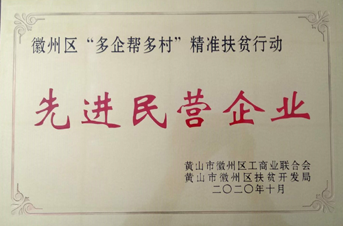 2020年10月13日,區工商聯(lián)、區扶貧開(kāi)發(fā)局聯(lián)合在呈坎鎮容溪碼頭農產(chǎn)品展銷(xiāo)會(huì )上舉行“多企幫多村”精準扶貧行動(dòng)先進(jìn)民營(yíng)企業(yè)表彰大會(huì )。包括我公司在內,徽州區共有20家企業(yè)獲此殊榮。