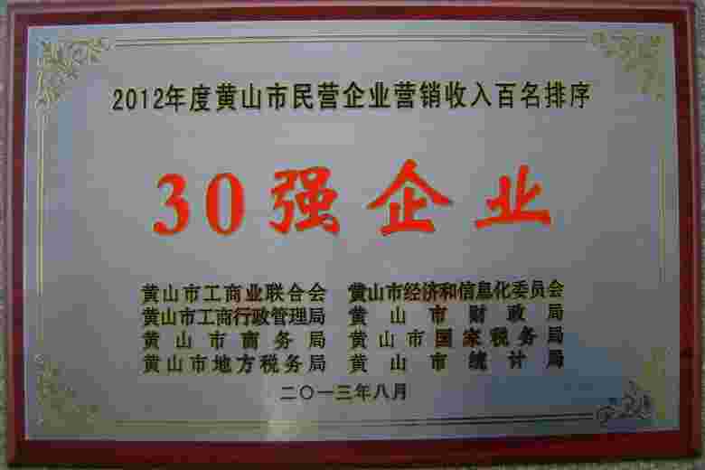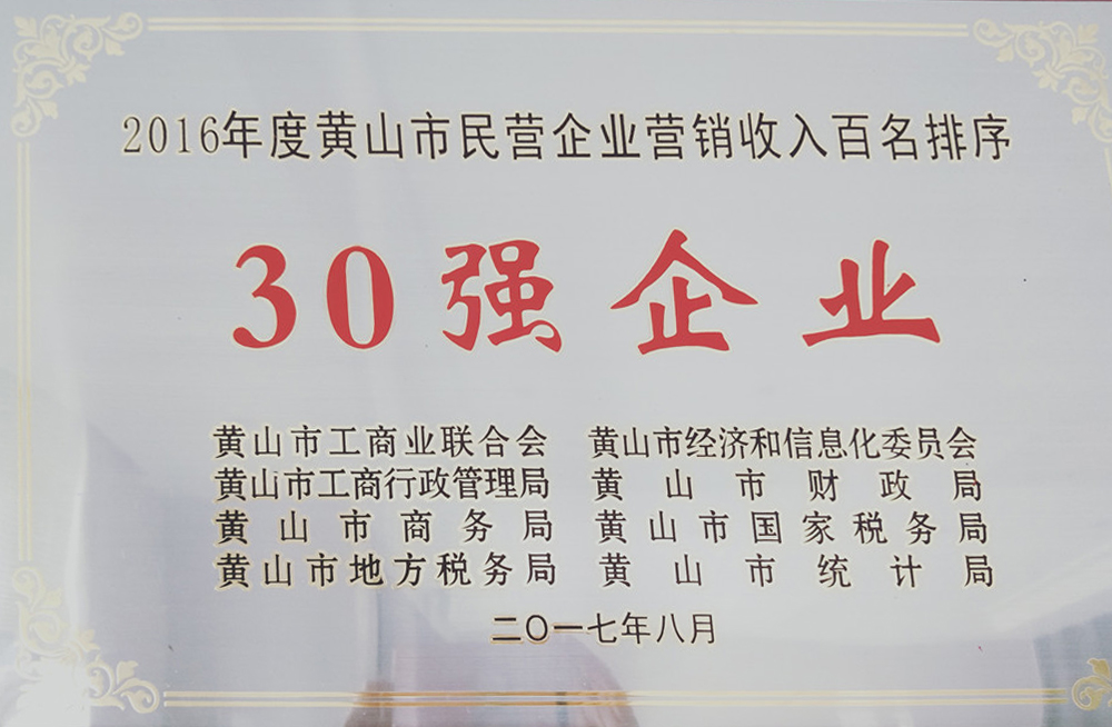 2016年黃山市民營(yíng)企業(yè)營(yíng)銷(xiāo)收入30強