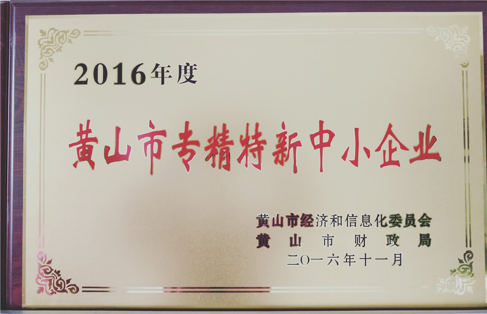 2016年度黃山市專(zhuān)精特新中小企業(yè)
